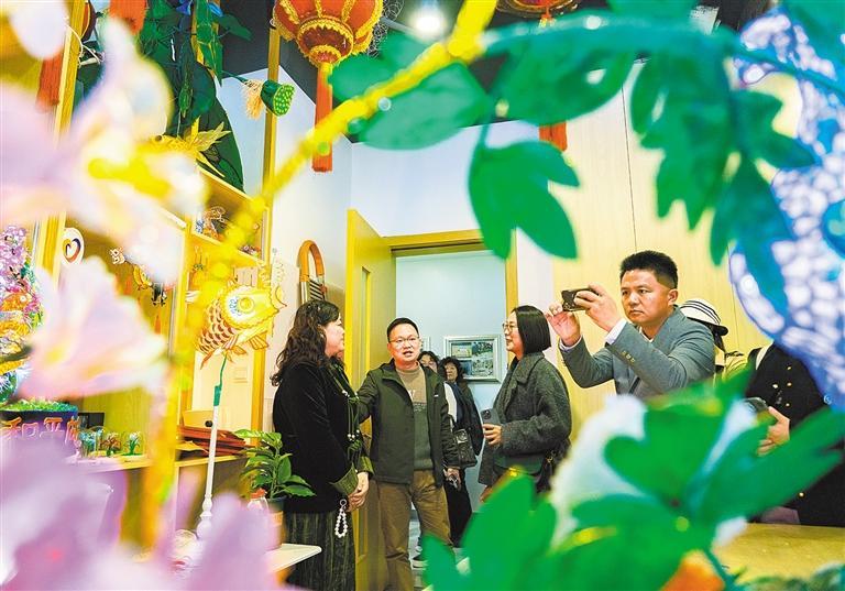 3月26日,觀眾參觀位于五里橋社區(qū)文化活動中心的呂協(xié)莊上海燈彩保護傳承工作室。創(chuàng)辦人呂協(xié)莊是上海燈彩市級傳承人。目前,該工作室有7名成員被認定為區(qū)級非遺傳承人。