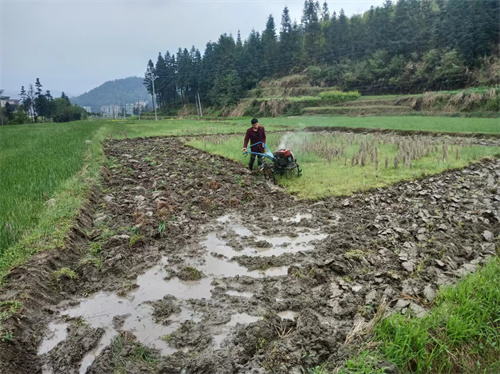 圖為新花園村1組青年農(nóng)民胡芳發(fā)在犁田。