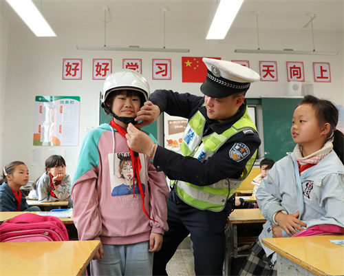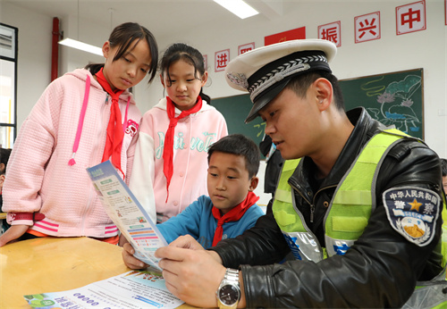 4月12日,湖南省保靖縣公安局毛溝交警中隊(duì)的民警在毛溝小學(xué),給學(xué)生講解交通道路安全知識(shí)。在“全民國(guó)家安全教育日”來(lái)臨之際,該縣交警大隊(duì)組織民警走進(jìn)中小學(xué)校,通過(guò)教育宣講、情景互動(dòng)、游戲體驗(yàn)等形式,讓學(xué)生從小學(xué)習(xí)安全知識(shí),不斷提高安全意識(shí)和安全防護(hù)能力。(俞采華 佘高衛(wèi))
