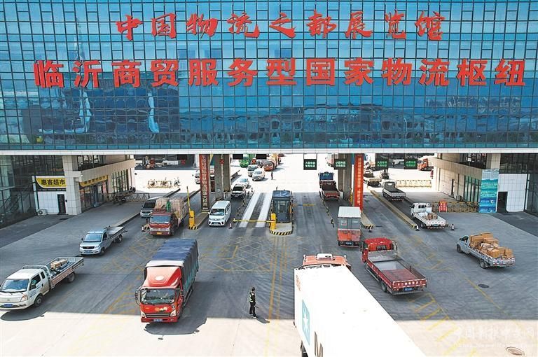 4月18日,山東臨沂順和國際智慧物流園,貨車有序進出園區(qū)。在臨沂39處大型物流園區(qū),26萬多輛各式貨車經(jīng)由3000多條物流專線,將種類繁多的貨物運往各地。