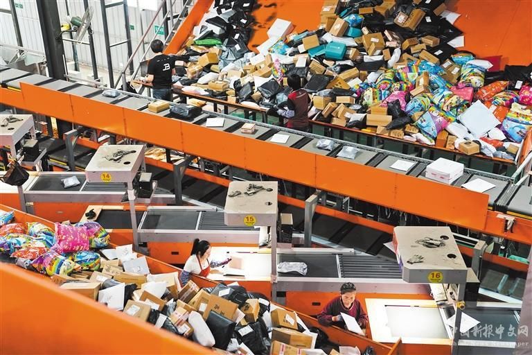 4月18日,河北白溝新城圓通快遞進出港分揀自動化操作車間,員工在分揀快遞包裹。在打通產(chǎn)銷通道、貫通供需兩端、連接線上線下、暢通內(nèi)外循環(huán)等方面,快遞行業(yè)持續(xù)發(fā)揮重要作用。應(yīng)曉展攝(中經(jīng)視覺)