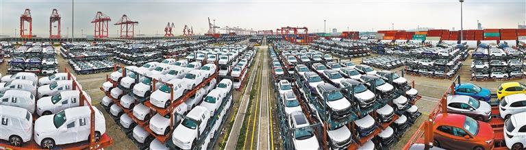 4月16日,江蘇省太倉港國際集裝箱碼頭,一批通過框架運輸方式出口的新能源汽車整裝待發(fā)。作為長三角腹地車企出口樞紐港,太倉港擁有全國港口最全的汽車出口運輸模式,為“中國車”加速出海、暢行天下保駕護航。