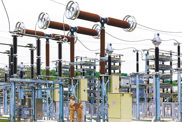 4月30日,工作人員在國內(nèi)首個“交改直”輸電工程江蘇鎮(zhèn)江±200千伏圌山換流站巡視電氣設(shè)備運行情況。湯德宏攝(中經(jīng)視覺)