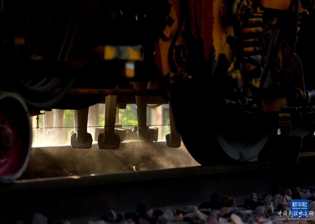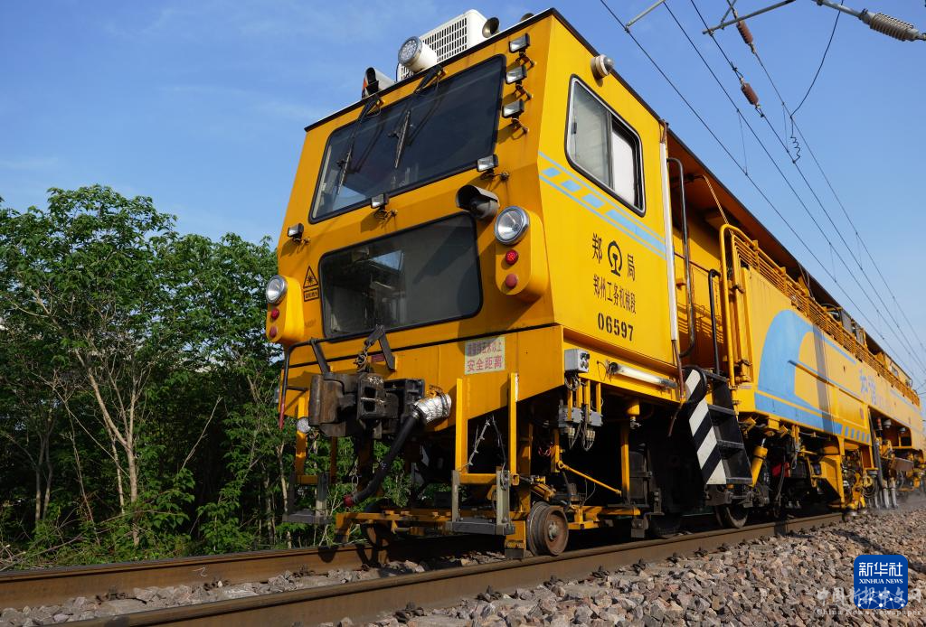 5月2日,國(guó)鐵集團(tuán)鄭州局鄭州工務(wù)機(jī)械段搗固車對(duì)線路進(jìn)行搗固作業(yè)。