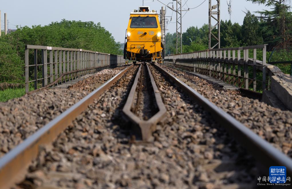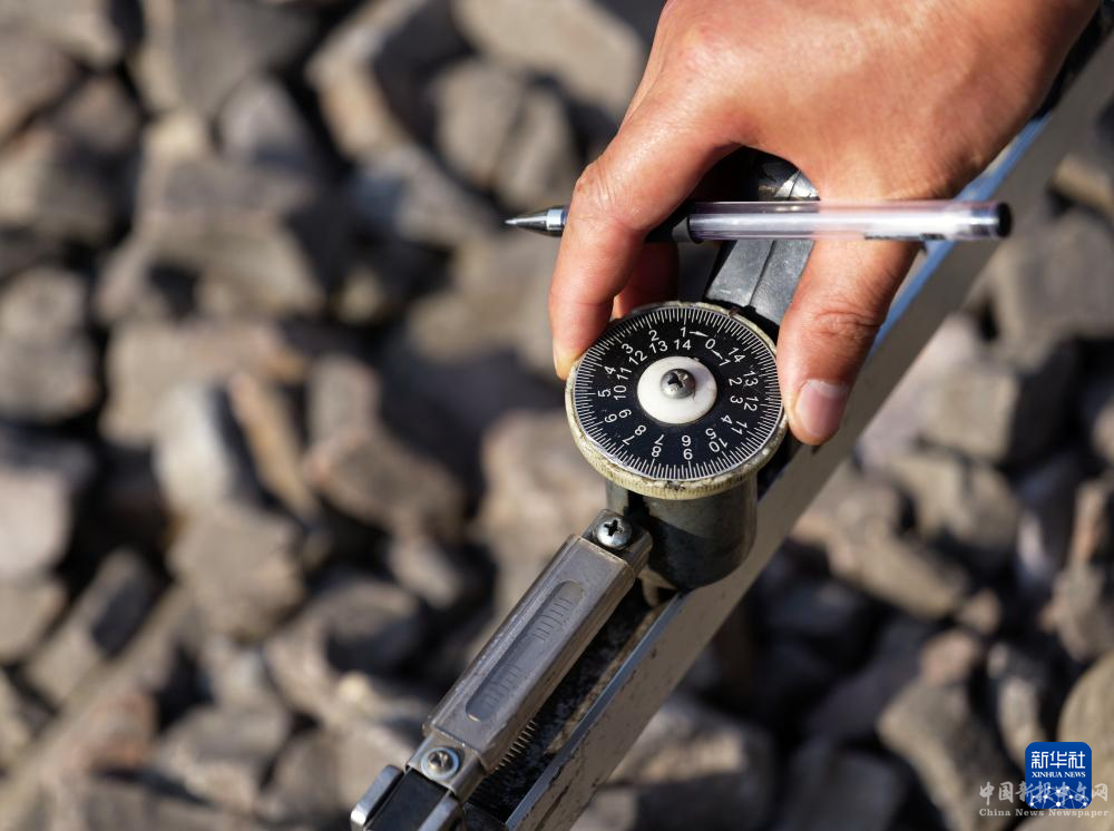 5月2日,國(guó)鐵集團(tuán)鄭州局鄭州工務(wù)機(jī)械段作業(yè)人員在核對(duì)搗固后的線路幾何尺寸。