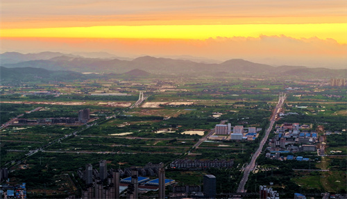 2024年5月27日,暴雨之后的安徽省合肥市廬江縣城,晚霞將城市映照得格外瑰麗多姿。(巢志斌 攝)