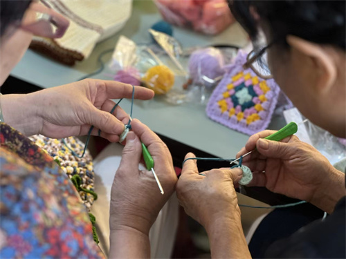 在老師們的悉心指導(dǎo)下,老人們紛紛拿起鉤針和毛線,開(kāi)始嘗試編織自己的作品。他們或獨(dú)自琢磨,或相互交流,彼此分享著鉤編的心得和技巧,通過(guò)互相幫助、共同完成作品,不僅感受到了手工鉤編的樂(lè)趣和成就感,更在彼此的陪伴和支持中找到了溫暖和力量。隨著一根根毛線的交織,一朵朵美麗的花片、一個(gè)個(gè)精致的祖母格零錢包在老人們手中逐漸成形。