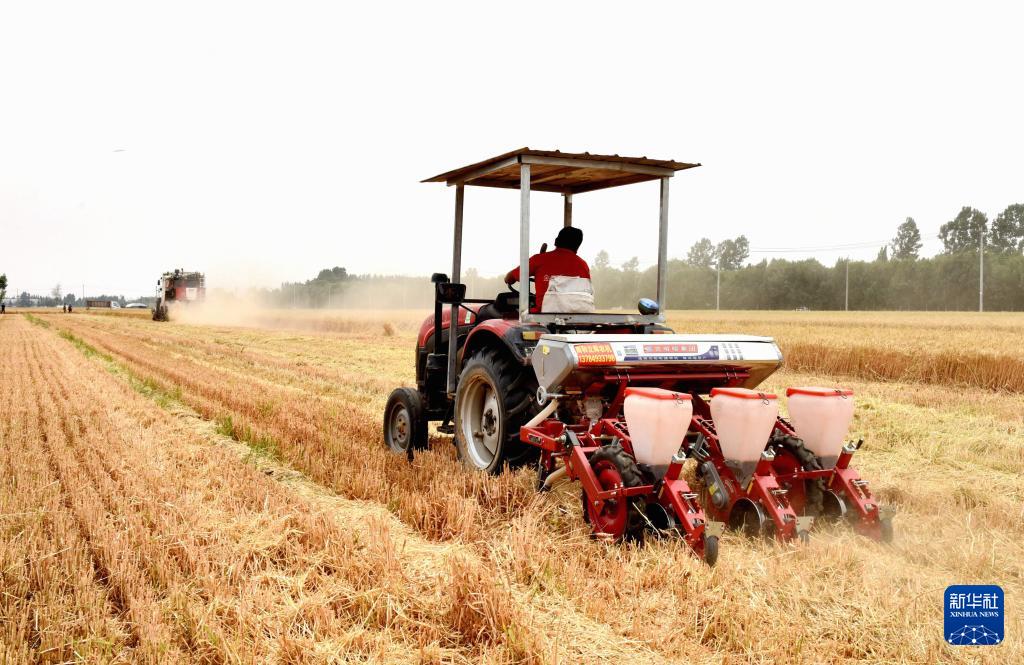 6月4日,在河北省邢臺(tái)市南和區(qū)左村,農(nóng)民駕駛播種機(jī)播種玉米。