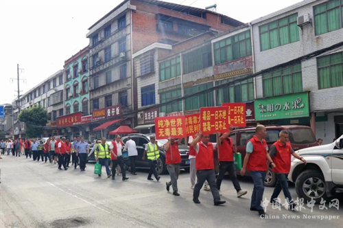 上午9點,一支由鎮(zhèn)村干部、公安干警、安全勸導員、志愿者組成的宣傳隊伍浩浩蕩蕩從政府大院出發(fā),他們高舉宣傳標語,齊喊宣傳口號,吸引了路過群眾的駐足觀看。