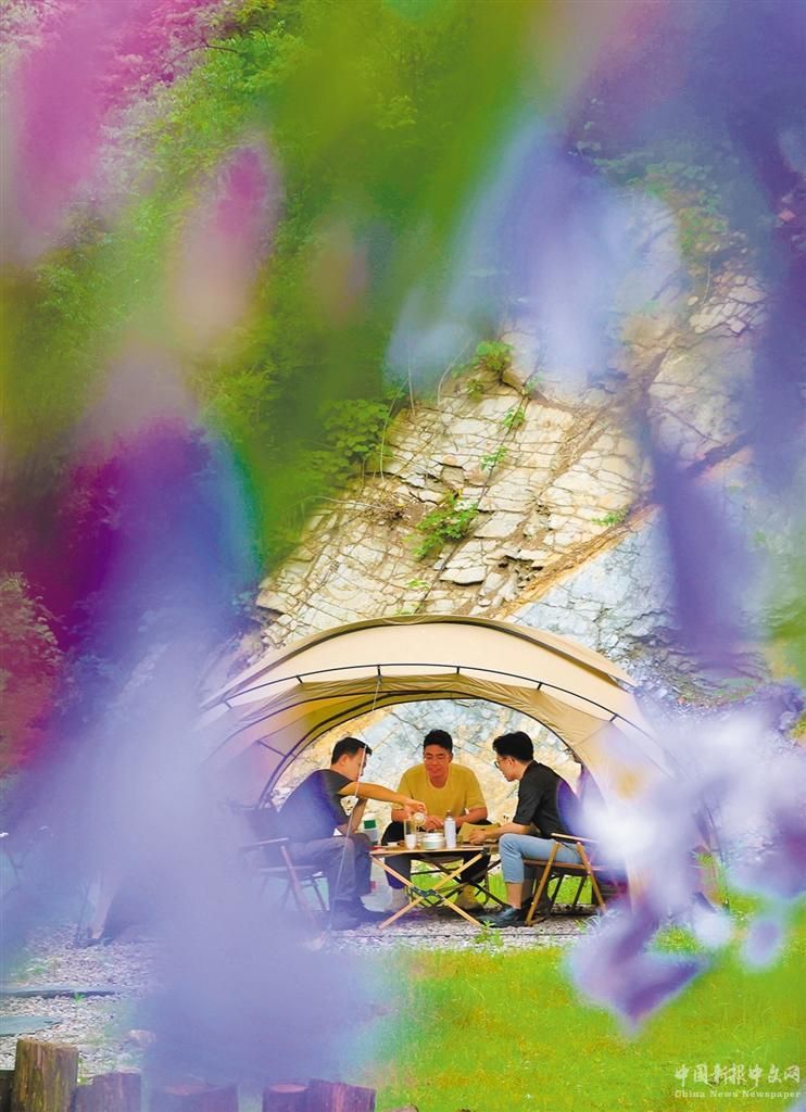 6月20日,河北省邯鄲市復(fù)興區(qū)康莊鄉(xiāng)中莊村,新建成的露營基地近山親水,吸引了不少市民和游客前來體驗(yàn)。