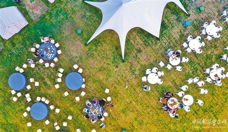 6月14日,市民在江蘇省興化市里下河濕地公園昭陽里森林露營基地舉行畢業(yè)季主題活動。親子露營、家庭露營以及適合聚會的輕奢露營深受人們喜愛。周社根攝(中經(jīng)視覺)