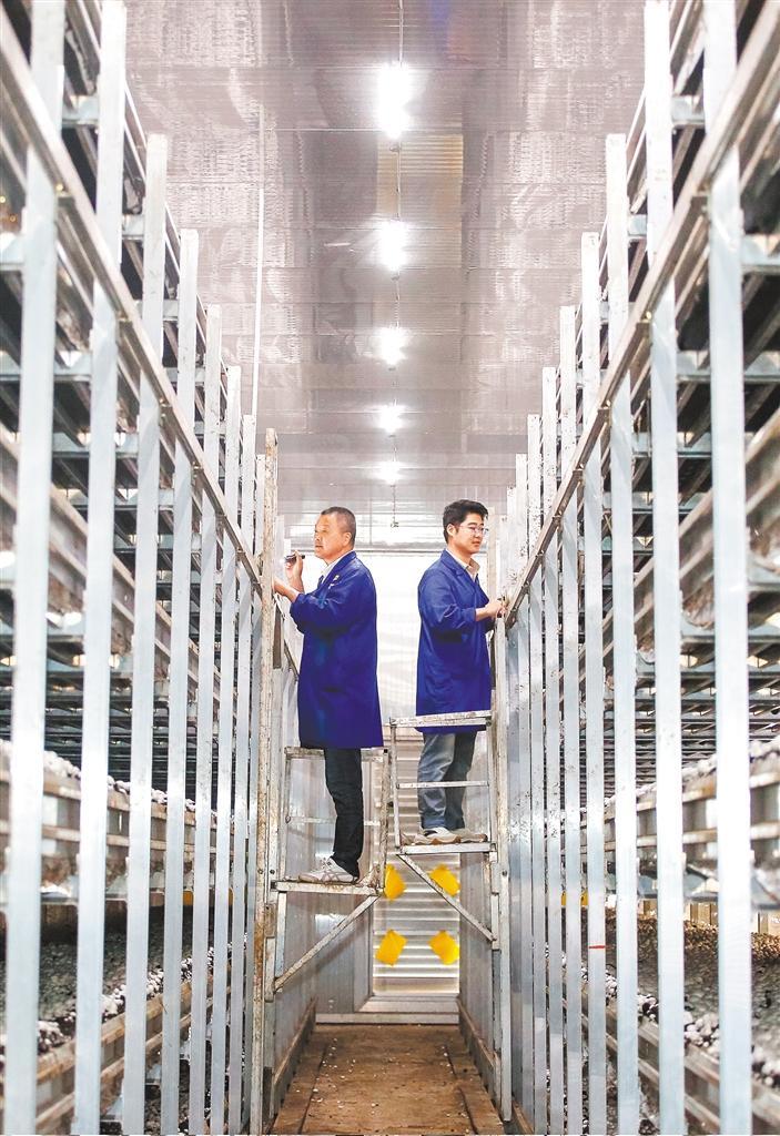 5月20日,上海聯(lián)中食用菌專業(yè)合作社,工作人員查看蘑菇生長(zhǎng)情況。近年來,公司與上海市農(nóng)科院合作打破雙孢菇工廠化生產(chǎn)菌種全部依賴進(jìn)口的局面。金燕玲攝(中經(jīng)視覺)