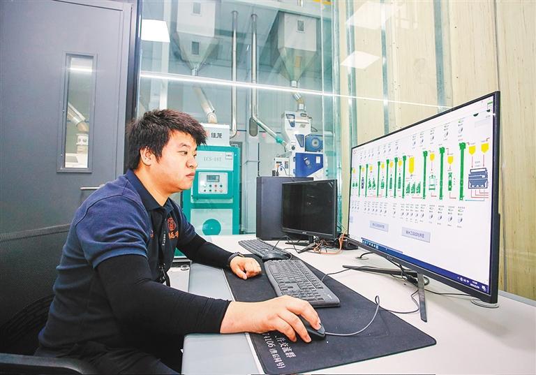 5月28日,上海盛致農(nóng)副產(chǎn)品有限公司員工智能化監(jiān)看大米品質(zhì)。該公司與上海市農(nóng)科院合作,開啟了金山稻米生產(chǎn)規(guī)?;?、集群化發(fā)展新路子。金燕玲攝(中經(jīng)視覺)