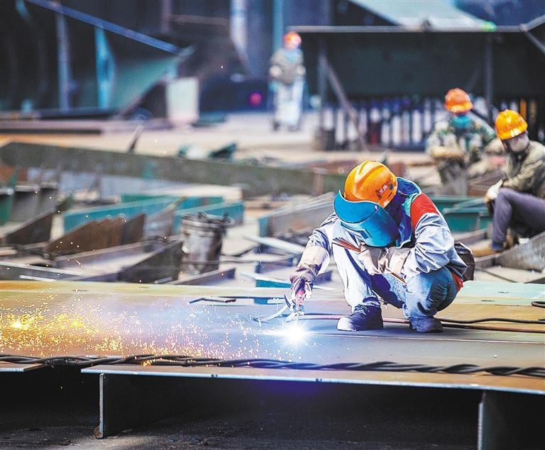 7月8日,江蘇南通市通州區(qū),南通象嶼海洋裝備有限責任公司員工在趕制出口船舶訂單。江蘇省是全國船舶海工產業(yè)第一大省,各類船舶出口規(guī)模連續(xù)多年居全國首位。
