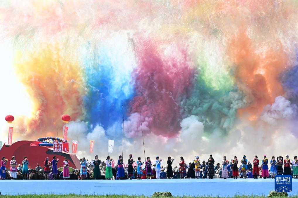 7月14日,演員在開幕式上表演,重現(xiàn)過去的牧民生活。
