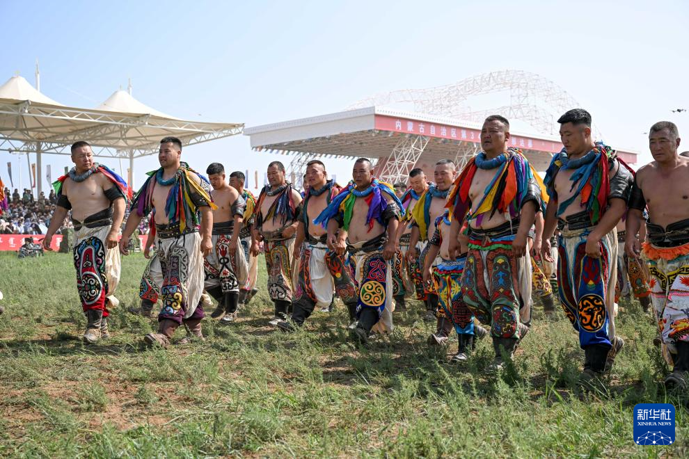 7月14日在開幕式上拍攝的搏克手(無人機(jī)照片)。