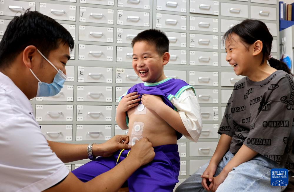 7月15日,在山東省榮成市中醫(yī)院,醫(yī)生為孩子貼“三伏貼”。