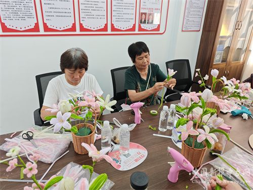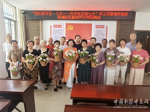 活動現(xiàn)場邀請的退役老兵中,有一對“紅寶石婚”的退役軍人夫妻,吳叔叔有著超十年的軍齡,吳阿姨有五年的軍齡,共同相互扶持走過了40余年的婚姻生活。浪漫“七夕”,少不了花兒的身影。東湖社區(qū)工作人員首先講解了“七夕節(jié)”的淵源,并細(xì)心地告訴居民并演示了插花的技巧和注意事項(xiàng)。在志愿者幫助和指導(dǎo)下,居民朋友們動手制作花徑,搭配五顏六色的花枝,將各種顏色的鮮花插入花籃,充分地發(fā)揮了自己的想象力和創(chuàng)造力。插花過程中,大家互相交流插花技巧、傳授經(jīng)驗(yàn),現(xiàn)場呈現(xiàn)出一片溫馨且浪漫的氛圍。