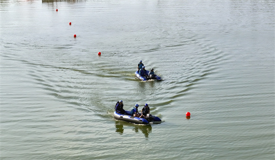 2024年8月31日,在安徽省合肥市廬江縣廬城鎮(zhèn)余月水庫(kù),當(dāng)?shù)氐乃{(lán)天救援隊(duì)隊(duì)員正冒著“秋老虎”的38°高溫,強(qiáng)化訓(xùn)練,提升救援隊(duì)綜合技能,打造一支專業(yè)的救援隊(duì)伍,時(shí)刻準(zhǔn)備搶險(xiǎn)救援。(巢志斌 攝)