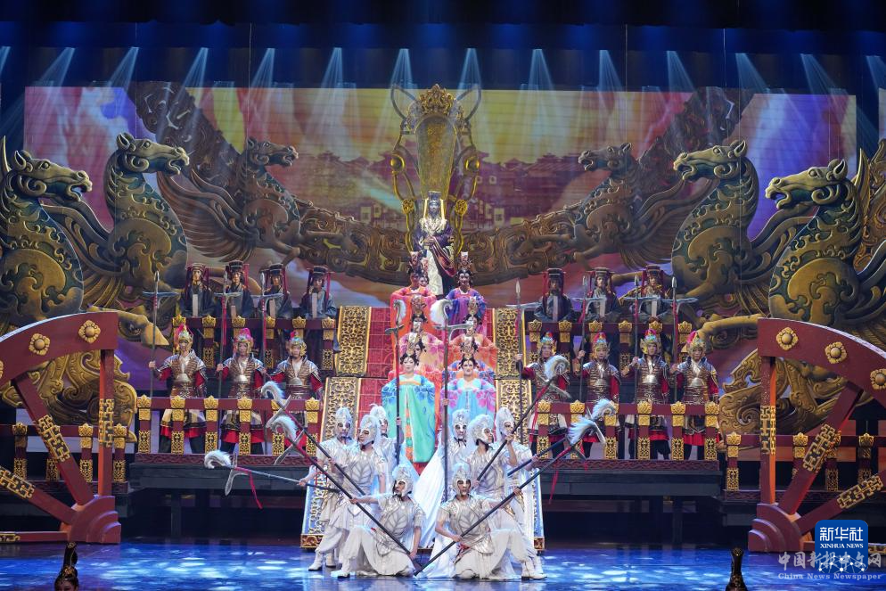 7月9日,演員在武威西涼大劇院表演大型沉浸式情景舞臺(tái)劇《天馬行》。
