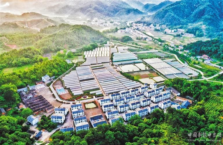 9月22日,瑞金市葉坪鎮(zhèn)黃沙村華屋小組,一排排蔬菜大棚與一棟棟潔白的客家小樓相映如畫(huà)。