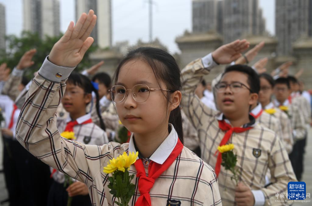 9月30日,在廣西壯族自治區(qū)烈士陵園,少先隊員參加紀念活動。