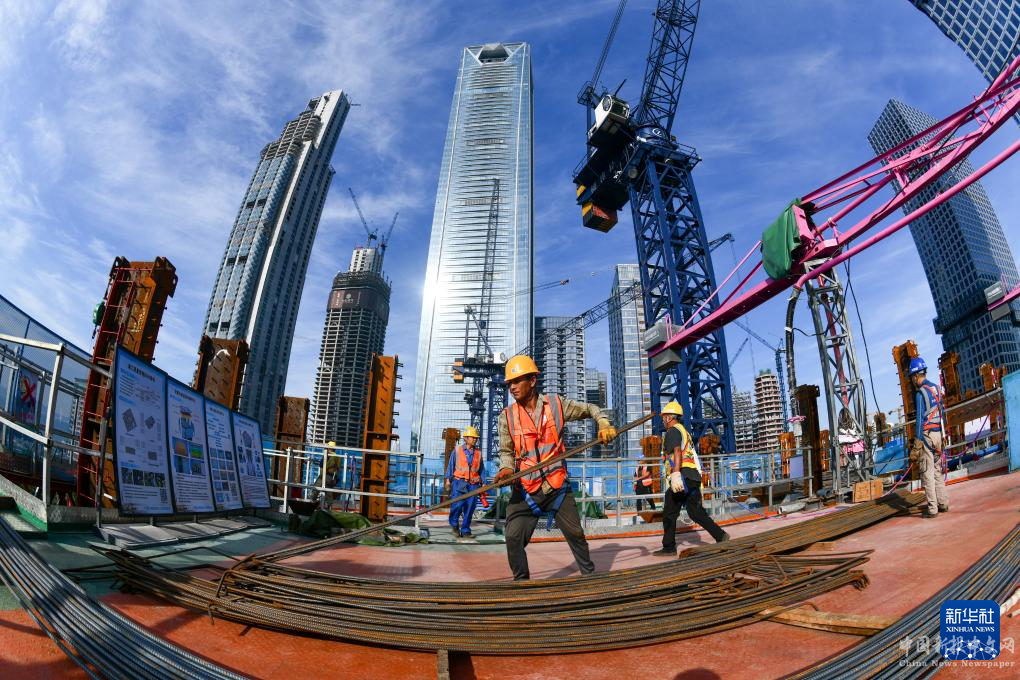10月3日,中建五局的建設者在深圳灣超級總部基地C塔項目建設現(xiàn)場施工。