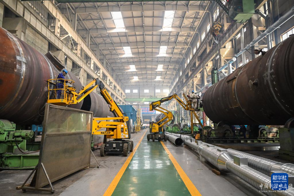 10月8日,工人在哈電集團(tuán)哈爾濱鍋爐廠有限責(zé)任公司重型容器分廠內(nèi)作業(yè)。