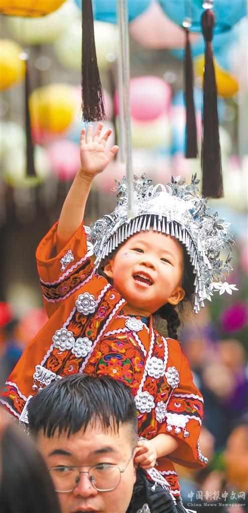 10月2日,貴州省遵義市播州區(qū),小朋友穿著民族服飾在烏江寨景區(qū)游玩。袁福洪攝(中經(jīng)視覺)