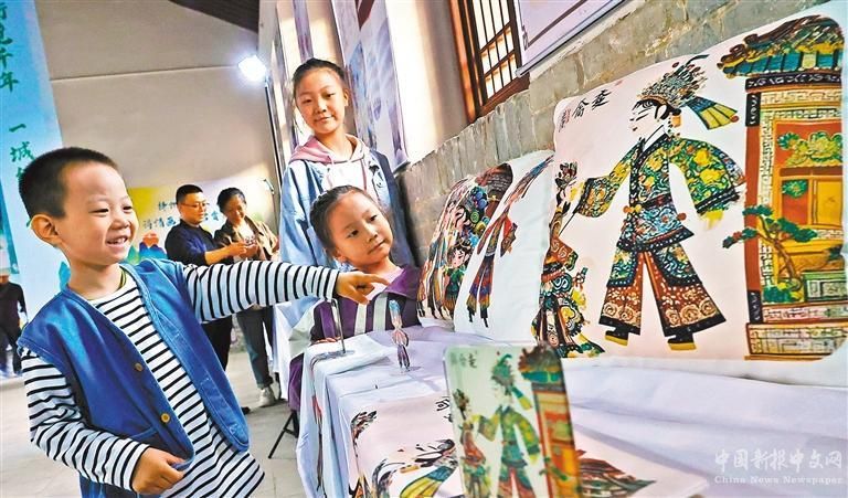 10月4日,山西省運(yùn)城市新絳縣絳守居園池,小朋友在觀看皮影文創(chuàng)產(chǎn)品。旅游平臺(tái)數(shù)據(jù)顯示,今年國(guó)慶假期,山西景區(qū)門票訂單量同比增長(zhǎng)59%。高新生攝(中經(jīng)視覺)
