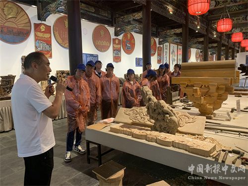 當(dāng)天上午,來自青海省海東市互助縣第一中學(xué)100余名學(xué)生首先參觀了關(guān)中傳統(tǒng)民居營造技藝傳習(xí)所,即古建之光——關(guān)中傳統(tǒng)民居營造技藝科普展的主場地。在這里,同學(xué)們不僅看到大量關(guān)中古民居老構(gòu)件及圖片資料,還可以觸摸營造工具、構(gòu)件實物,了解關(guān)中傳統(tǒng)民居建筑知識和基本原理。