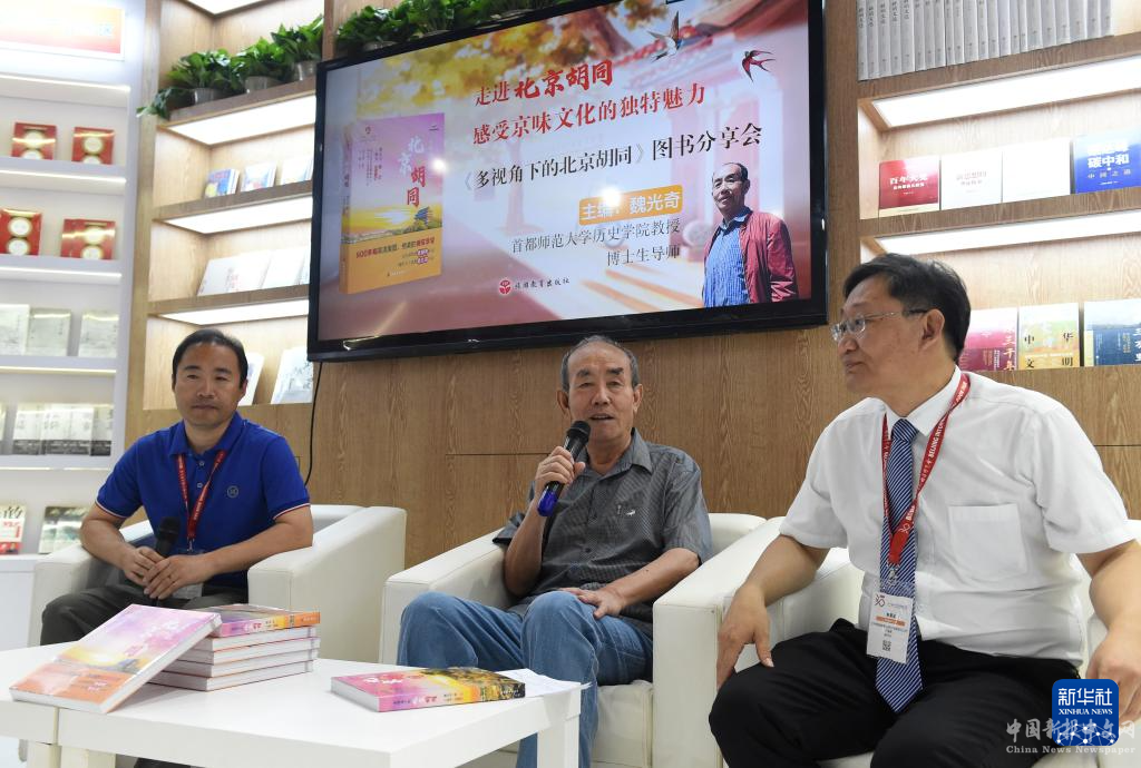 6月19日,在北京展區(qū),旅游教育出版社舉行《多視角下的北京胡同》圖書分享會,該書主編魏光奇(中)等嘉賓向讀者介紹北京胡同的獨特魅力。