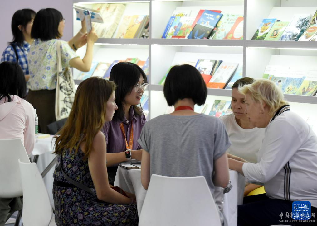 6月19日,中外出版商在博覽會上洽談業(yè)務。