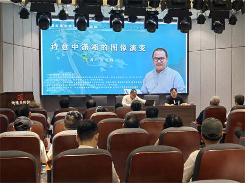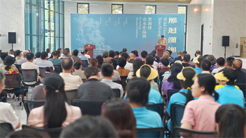 中國新報(bào)訊(記者 符秋祖)7月5日上午,由中共衡陽市委宣傳部、衡陽市文旅廣體局主辦,楊衛(wèi)、鄒宏偉策展,藝術(shù)顧問陳湘波,學(xué)術(shù)支持張方白、陽先順,“雁回瀟湘——賀海鋒山水畫作品展”在衡陽市美術(shù)館開展,省內(nèi)外數(shù)百名文學(xué)藝術(shù)家和書畫收藏家、書畫愛好者參與其盛。當(dāng)天下午,賀海鋒在該館名家學(xué)術(shù)講壇做了一場《詩意中瀟湘的圖像演變》講座。