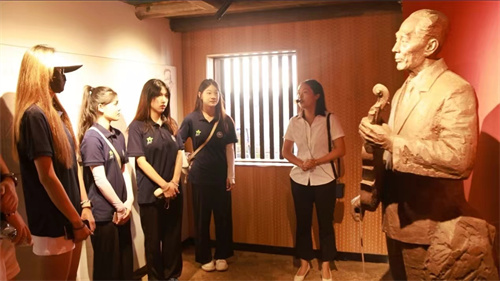 實(shí)踐團(tuán)成員們懷著崇敬的心情走進(jìn)賀綠汀故居。這座古樸的建筑承載著賀綠汀先生的成長記憶和藝術(shù)生涯。在參觀過程中,成員們跟隨講解員的腳步,眼神中充滿了專注與渴望。他們側(cè)耳傾聽,每一個歷史細(xì)節(jié)都生怕錯過;他們駐足凝視,每一張歷史照片、每一份文獻(xiàn)資料、每一件實(shí)物,都如同歷史的信使,將賀綠汀先生的生平事跡、音樂創(chuàng)作歷程以及他在中國音樂史上的重要地位,清晰地展現(xiàn)在他們眼前。