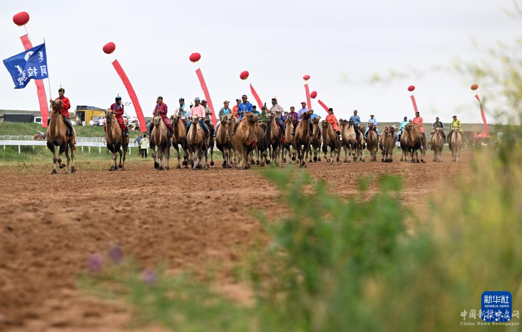 8月8日,牧民在鄂托克旗那達(dá)慕大會(huì)上騎駱駝入場(chǎng)。