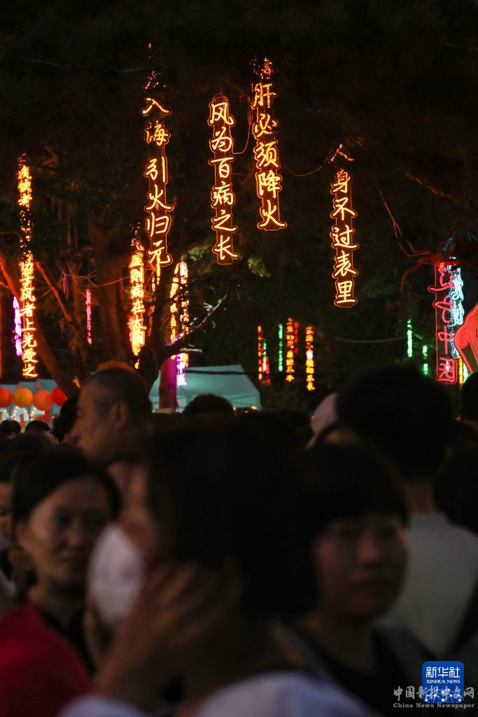 8月9日,市民在中醫(yī)藥文化夜市上游玩。