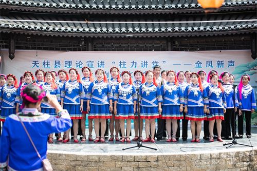 2023年,天柱縣探索打造了“柱力講堂”理論宣講品牌。今年,天柱縣委宣傳部始終堅(jiān)持本土化原則,以“世界上最長(zhǎng)的歌會(huì)”——“四十八寨歌節(jié)”為特色,積極引導(dǎo)本土少數(shù)民族同胞通過(guò)改編和創(chuàng)作山歌的形式,巧妙地將國(guó)家級(jí)非物質(zhì)文化遺產(chǎn)“四十八寨歌節(jié)”與“柱力講堂”理論宣講品牌相結(jié)合,形成了獨(dú)具特色的理論宣講“金鳳新聲”子品牌。“金鳳新聲”將理論宣講巧妙融入傳統(tǒng)文化,形成“理論宣講+山歌傳唱+新媒體傳播+大眾化普及”的形式,以群眾喜聞樂(lè)見(jiàn)的形式展現(xiàn)宣傳內(nèi)容,在傳承中賦予傳統(tǒng)文化新的內(nèi)涵,也讓理論宣講更加接地氣、入人心。