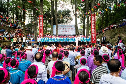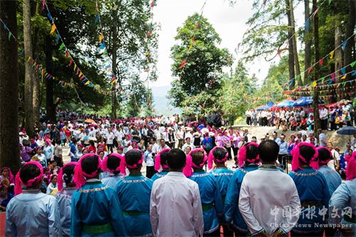 8月10日,在天柱縣坌處鎮(zhèn)三門(mén)塘歌場(chǎng),來(lái)自湘黔邊界的60支山歌隊(duì)伍,借助四十八寨歌節(jié)開(kāi)展“金鳳新聲”理論宣講,活動(dòng)現(xiàn)場(chǎng)人頭攢動(dòng),熱鬧非凡,各地游客紛至沓來(lái),一同感受四十八寨歌節(jié)的獨(dú)特魅力。