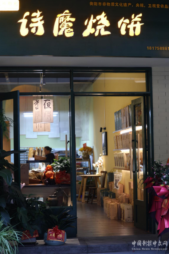 詩魔燒餅店不僅是一家燒餅鋪,更是一個(gè)集美食、文學(xué)、藝術(shù)于一體的文化空間。在這里,顧客可以一邊品嘗著酥脆可口的燒餅、月餅等衡陽美食,一邊沉浸在由詩歌、音樂、攝影、美術(shù)共同營造的詩意氛圍中??Х鹊南銡狻⒃姼璧拇己?、書法的古樸,共同構(gòu)建了一個(gè)遠(yuǎn)離塵囂的心靈桃花源,讓每一個(gè)踏入此地的靈魂都能找到詩意的棲居之所,每一塊精心制作的燒餅和月餅,都蘊(yùn)含著對(duì)過往歲月的深深敬意;每一句流淌在舌尖的詩行,都是對(duì)未來美好生活的無限期許。詩魔燒餅將以衡陽南華里樂街為新的起點(diǎn),開啟了一場(chǎng)以燒餅為舟、詩歌為帆的筑夢(mèng)之旅。(通訊員 陽瓊 羅詩斌 攝影:辣椒老師)