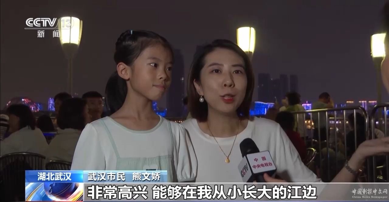 武漢市民 熊文嬌:非常高興能夠在我從小長大的江邊,看到現(xiàn)在這樣一個盛況,燈光秀、煙花、無人機表演都非常精彩。