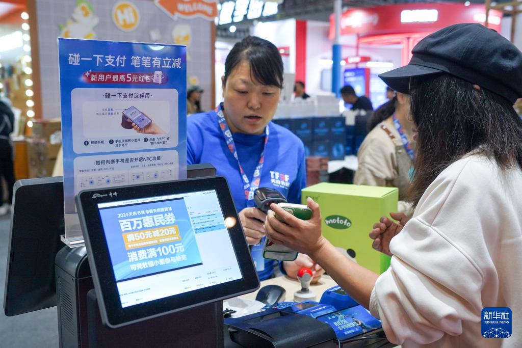 10月11日,讀者在2024天府書展現(xiàn)場使用購書惠民券結賬。