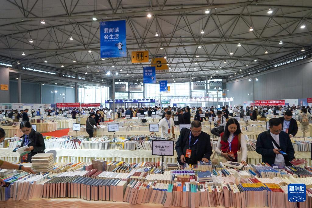 這是10月11日在成都世紀城新國際會展中心拍攝的全國出版物館配館建交易會現(xiàn)場。