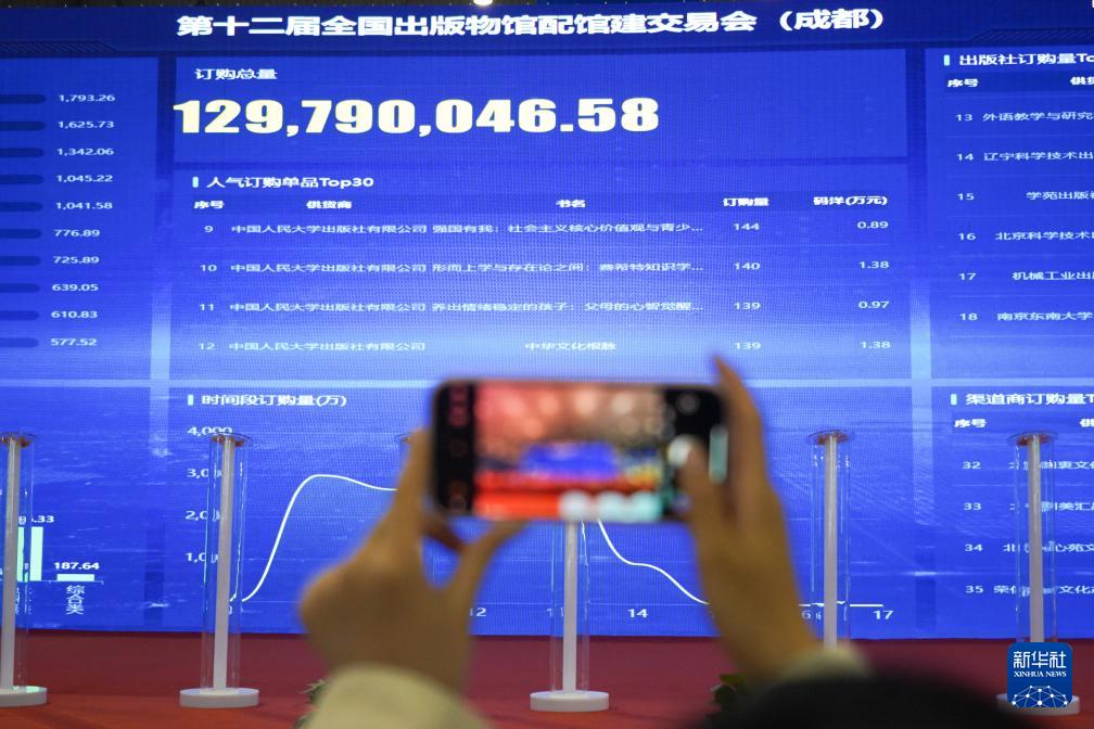 10月11日,參展商在全國出版物館配館建交易會現(xiàn)場拍攝實時交易數(shù)據(jù)。
