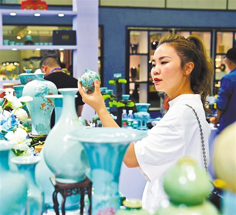 10月19日,景德鎮(zhèn)國際陶博城的藝術(shù)瓷作品吸引了參觀者的目光。瓷博會搭建了“以瓷為媒,對話世界”的文化交流平臺,促進陶瓷產(chǎn)業(yè)發(fā)展。 李 劼攝(中經(jīng)視覺)
