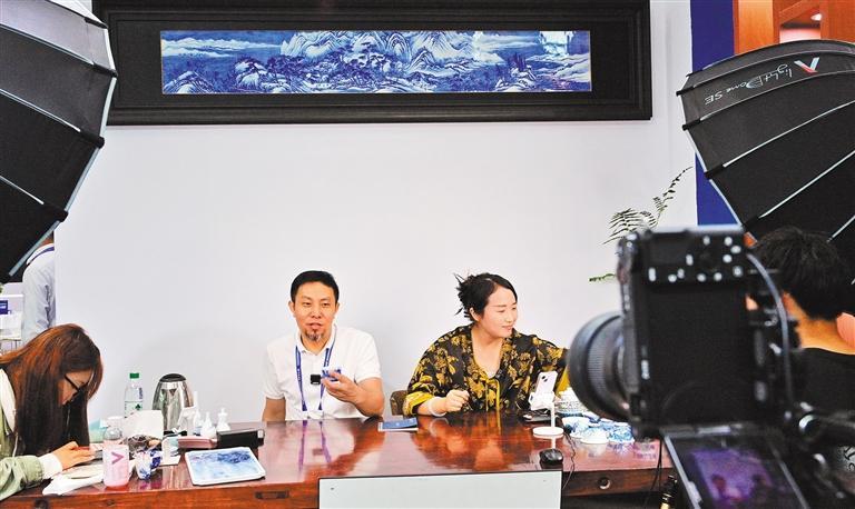 10月18日,一陶瓷企業(yè)在景德鎮(zhèn)國際陶瓷博覽會主會場直播銷售陶瓷產(chǎn)品。景德鎮(zhèn)正在組建完整的線上線下產(chǎn)業(yè)鏈,推動產(chǎn)業(yè)集聚發(fā)展,促進智慧零售新場景落地。楊繼紅攝(中經(jīng)視覺)