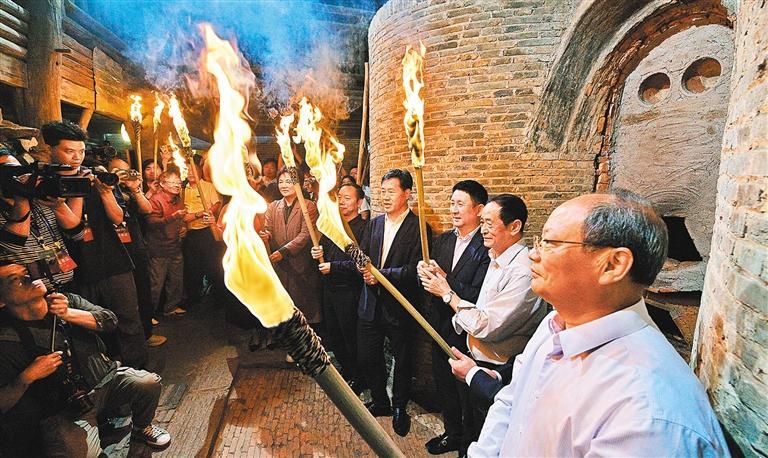 10月19日,景德鎮(zhèn)“葫蘆窯”點火儀式現(xiàn)場。自2009年起,13座歷代典型瓷窯相繼復活,每月堅持柴窯燒煉,非物質(zhì)文化遺產(chǎn)得到活態(tài)傳承與展現(xiàn)。楊繼紅攝(中經(jīng)視覺)