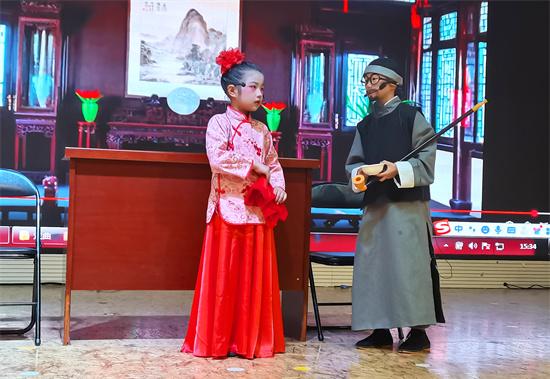2024年10月25日,在安徽省合肥市廬江縣廬城鎮(zhèn)城北小學幸福校區(qū),孩子們在藝術(shù)老師的指導下,登臺演出黃梅戲 、廬劇經(jīng)典片段。