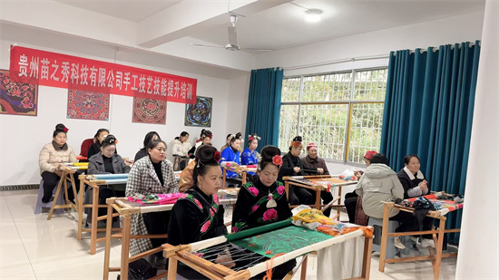 開業(yè)儀式當(dāng)天,苗之秀公司還舉辦了繡娘手工技藝培訓(xùn),20 多名繡娘滿懷熱情地參與培訓(xùn)。本次培訓(xùn),公司邀請了經(jīng)驗豐富的師傅,精心設(shè)計課程,為繡娘們傳授精湛的技藝和深厚的文化內(nèi)涵。