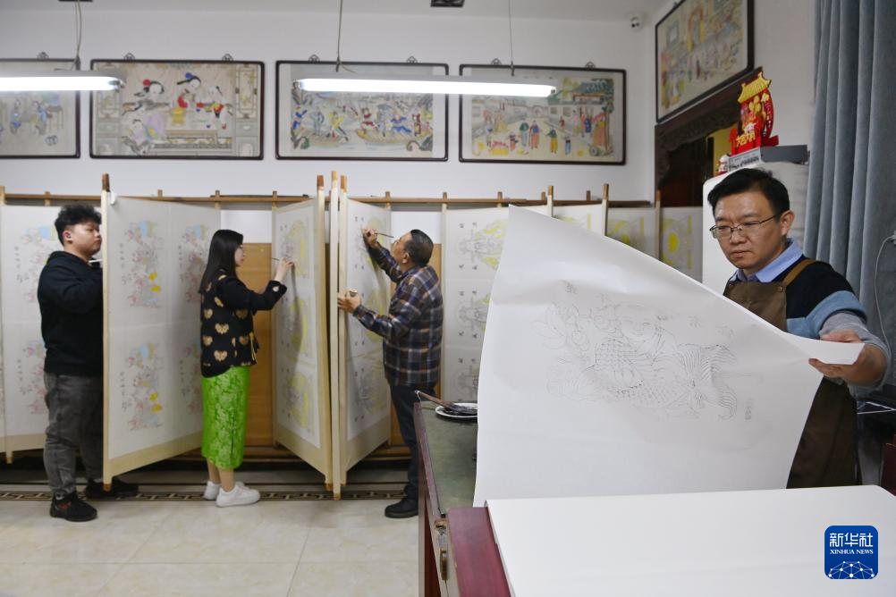 新年將至,在天津市西青區(qū)楊柳青古鎮(zhèn),各家年畫店鋪都迎來趕制年畫訂單的高峰期。